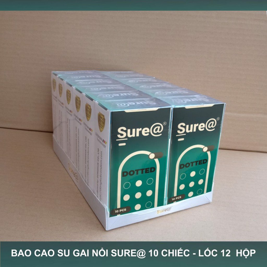Bao cao su có gân gai Sure dotted- Hộp 12c x Lốc 12 Hộp