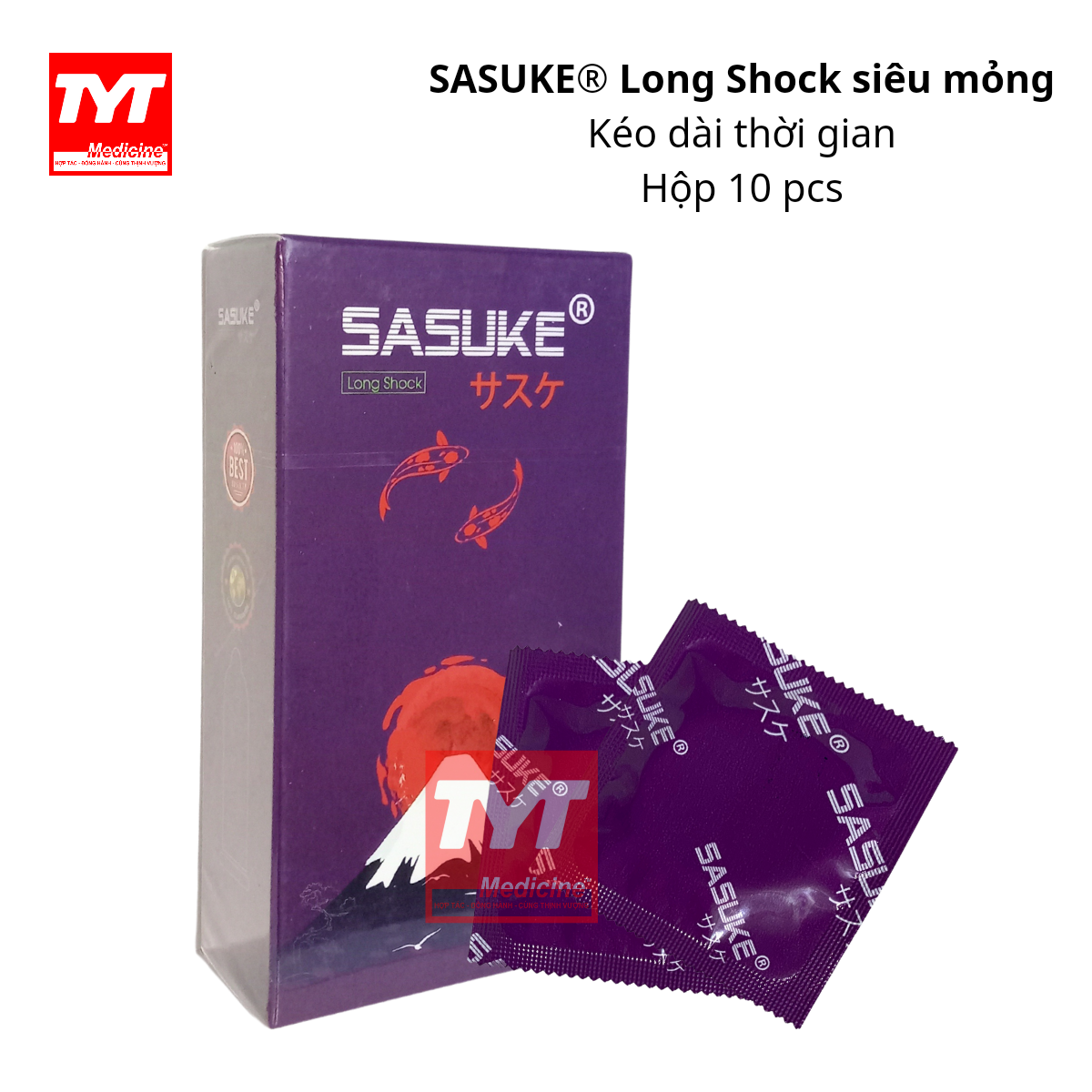 Bao cao su Sasuke Long shock trơn mỏng- Hộp 10 chiếc kéo dài thời gian