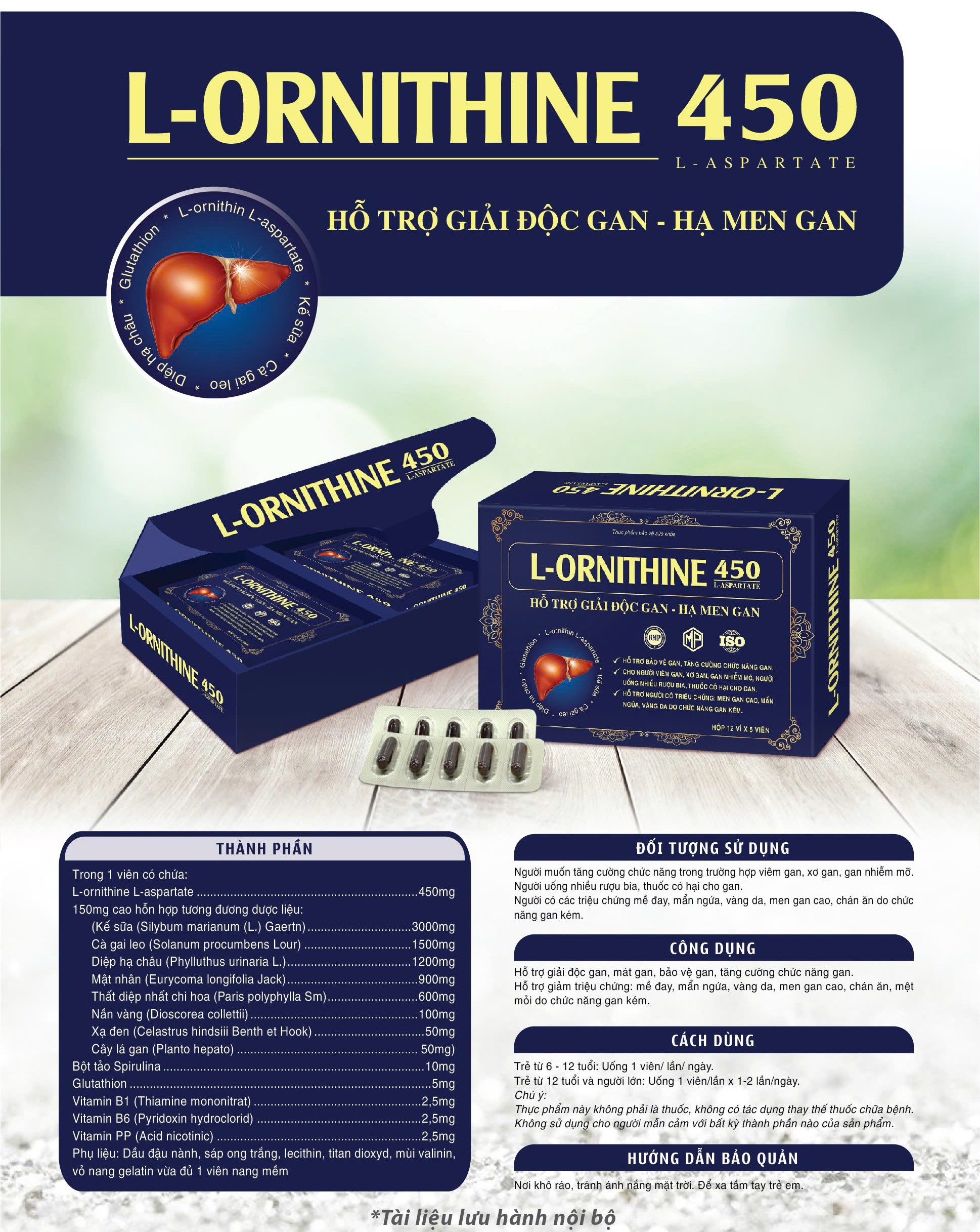 Giải độc Gan-Hạ Men Gan L-ORNITHINE 450 cao cấp- Hộp 12 vỉ x 5 viên