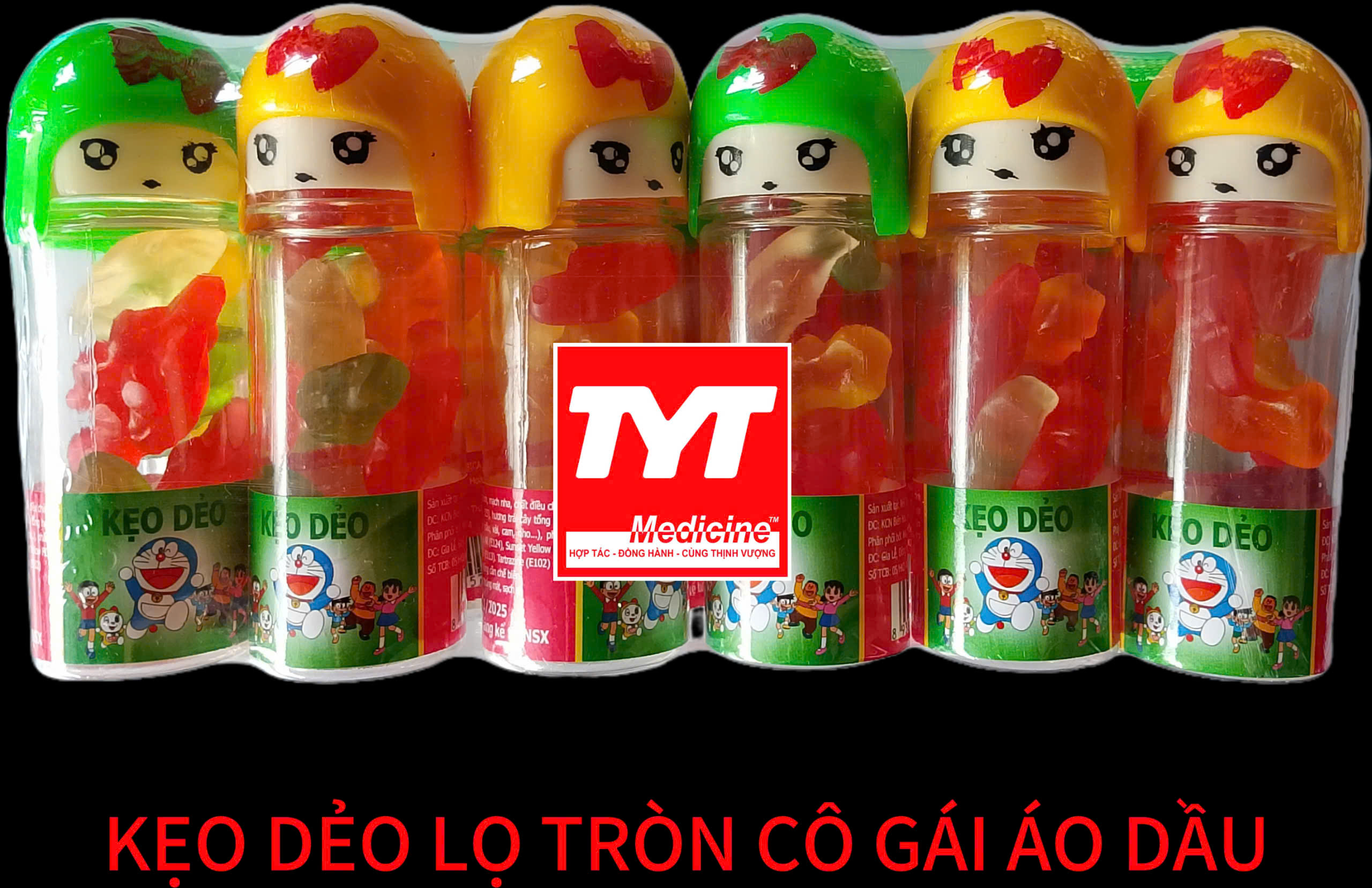 Kẹo dẻo Lọ tròn cô gái áo dầu-Lốc 18 Lọ đầy kẹo vị ngon