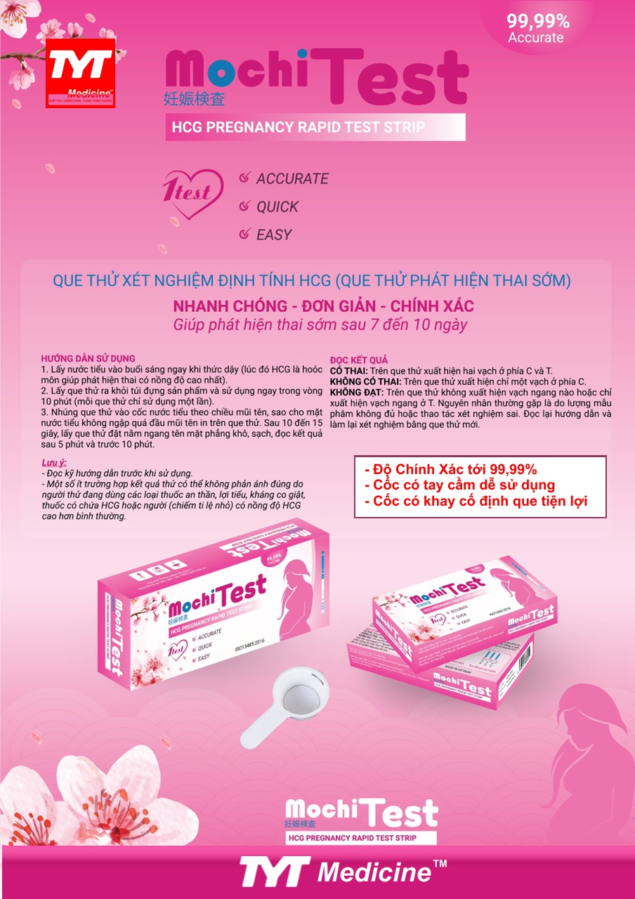 Que Test thử thai Mochi bản to 5mm- HCG Pregnancy x Bịch 50 Que test nhanh