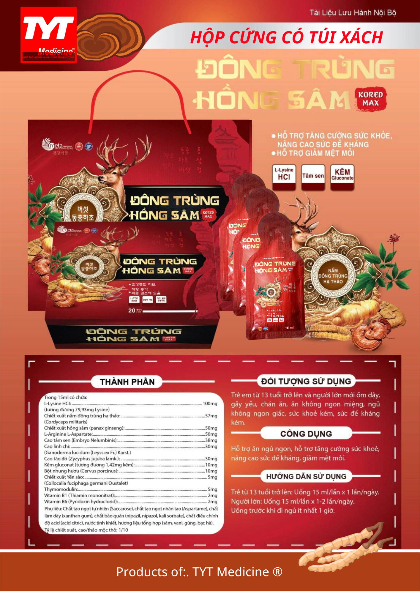 Sâm gói Đông Trùng Hồng Sâm Kored Max- Sâm gói nước dạng gói Hộp cứng cao cấp 20 gói