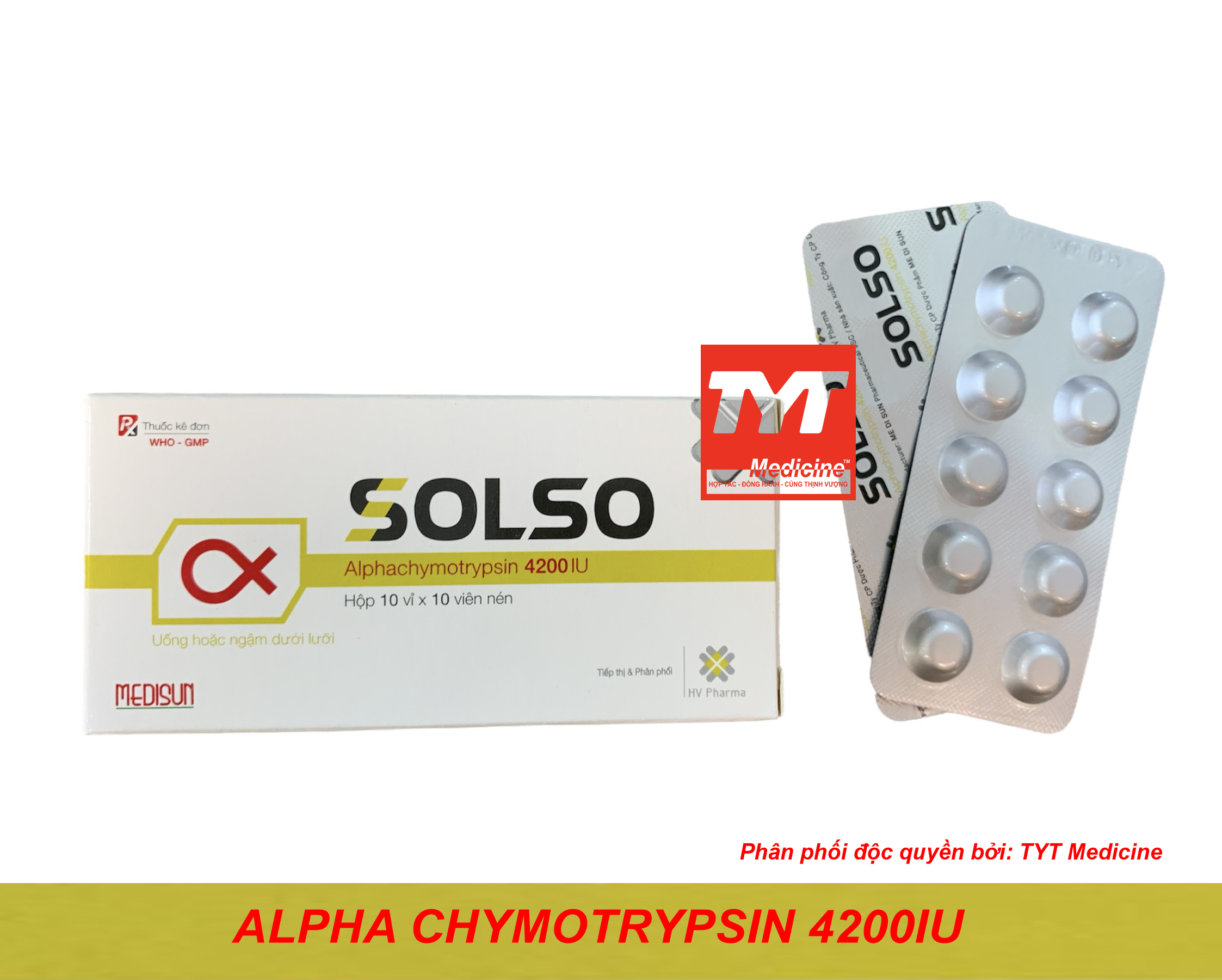 Solso Alpha chymotrypsin 4200IU-Hộp 10 vỉ x 10 viên vỉ kẽm