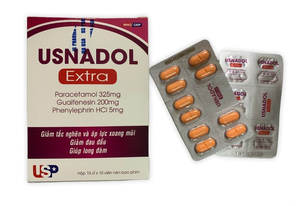 USNADOL EXTRA 3 thành phần- Para 325mg+Guaiphenesin 200mg+Phenylephrine 5mg- Giảm đau đầu giảm tắc nghẽn và áp lực xoang mũi Giúp long đàm