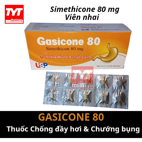 Thuốc Simethicone 80mg USP Viên nhai chống đầy hơi và chướng bụng -Gasicon 80-hộp 10 Vỉ x 10 Viên nhai