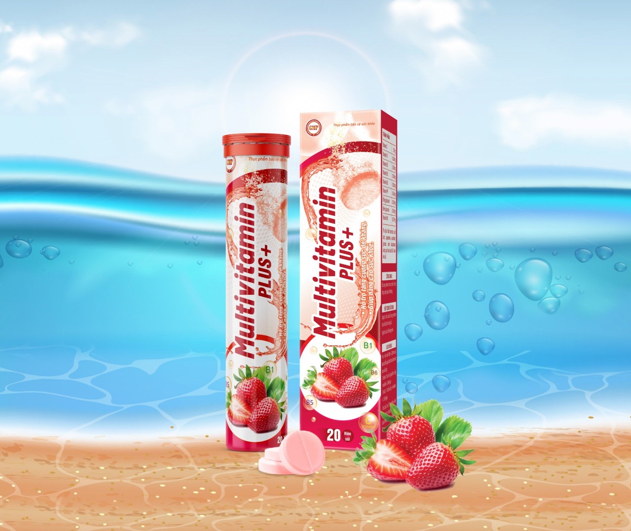 Viên sủi 4g Multivitamin Vị Dâu tây-Có hộp