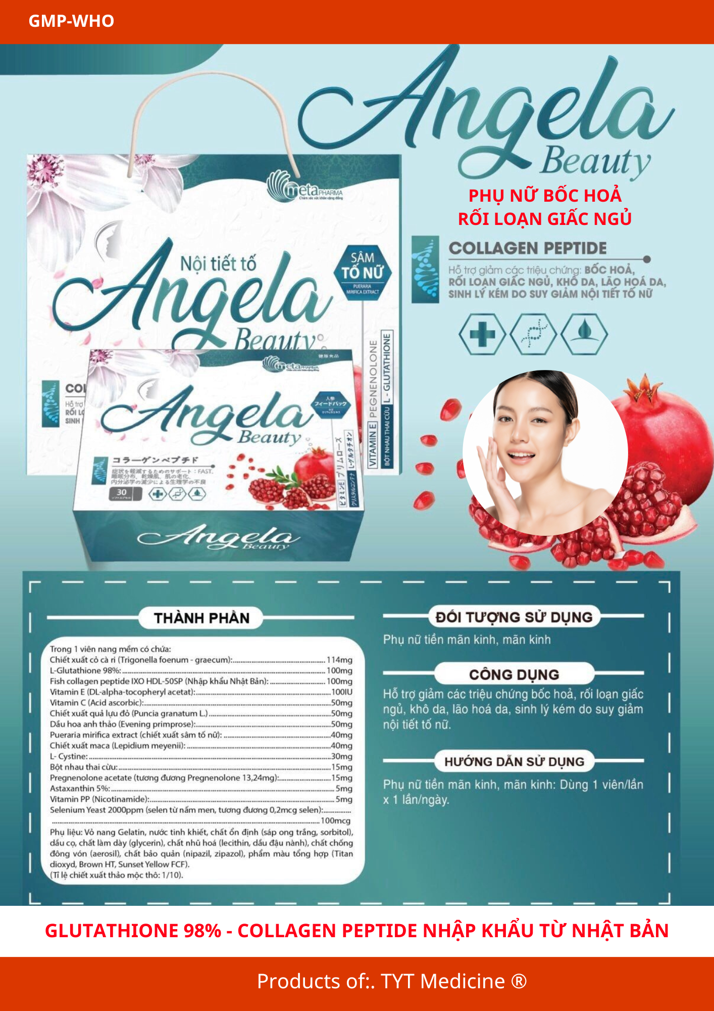 Viên uống Nội tiết Tố Angela Beauty- Hộp cứng có túi xách – Phụ nữ Bốc hỏa
